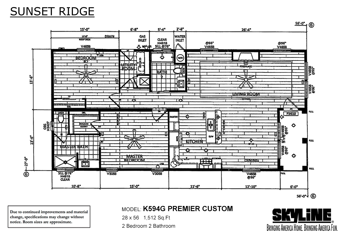 This Skyline Homes SUNSET RIDGE K594G Premier Custom is another example of Skyline Homes ability to customize floor plans to meet customers needs. This home features spacious open living areas with a beautiful convenient kitchen. Lots of tall windows. Residential covered porch adds residential style and enhances indoor/outdoor living space. Available as a modular home or as a manufactured home.